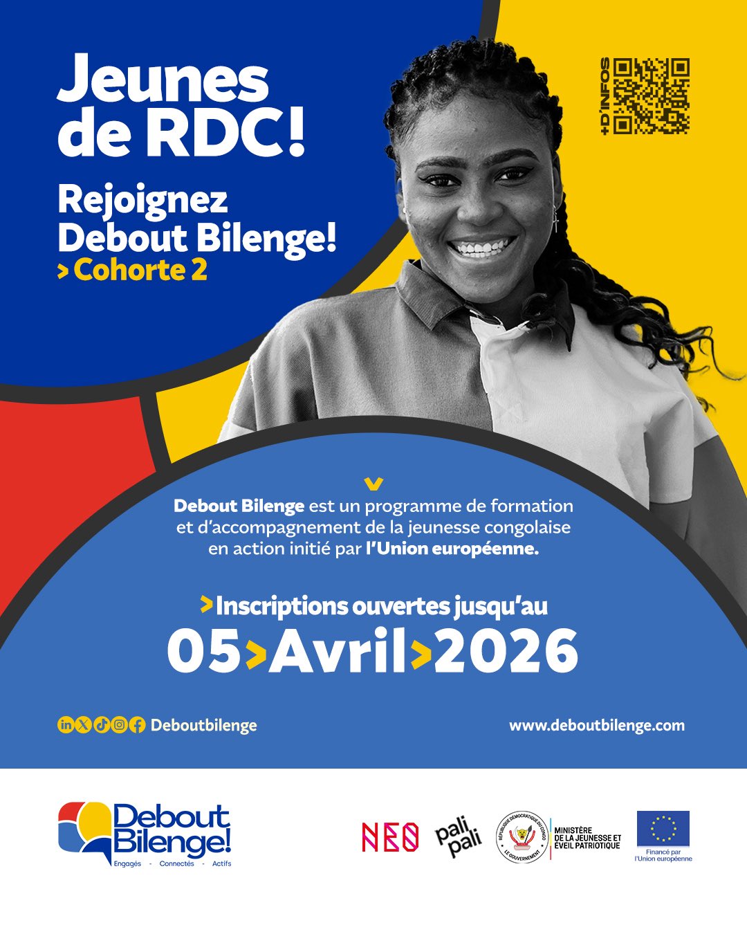 Les jeunes congolais âgés de 18 à 29 ans sont appelés à postuler à la deuxième cohorte du programme Debout Bilenge, une initiative soutenue par l’Union européenne visant à renforcer l’engagement citoyen et le leadership de la jeunesse en République démocratique du Congo.
